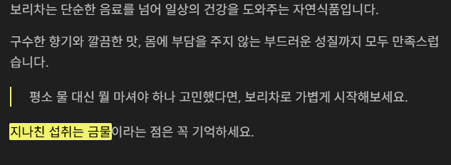 보리차는 단순한 음료가 아닌, 생활 속 작은 건강 습관이라는 생각이 듭니다. 자극적인 음료가 넘쳐나는 요즘, 구수하고 순한 보리차 한 잔이 주는 안정감은 꽤 특별합니다. 특히 계절 상관없이 따뜻하게도 시원하게도 마실 수 있어 더 매력적이죠. 단, 아무리 좋은 것도 과하면 좋지 않다는 점만 명심하면, 매일의 물 대용으로 손색없는 선택이라고 느꼈습니다.