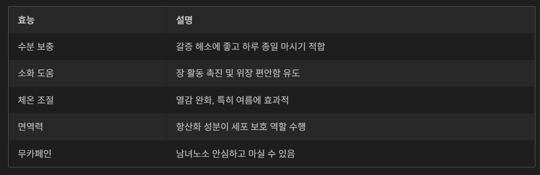 | 무카페인 | 어린이, 노년층, 임산부도 부담 없이 섭취 가능 |