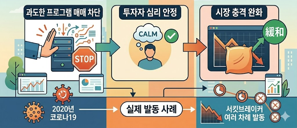 대표적으로 2020년 코로나19 금융 충격 당시 코스피 시장에서 서킷브레이커가 여러 차례 발동되었습니다.