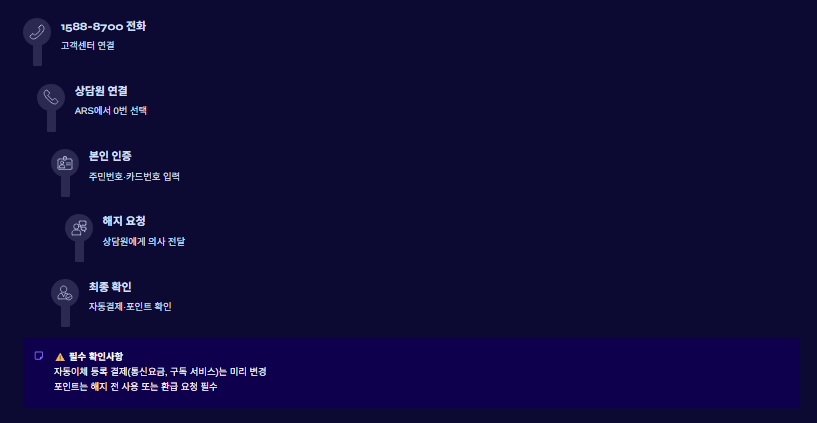 | 포인트 | 잔여 포인트는 해지 전 사용 또는 환급 |