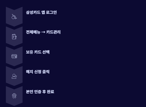 A. 가능합니다. 삼성카드 앱에서 로그인 후 카드관리 → 카드해지 메뉴로 진행하면 됩니다.