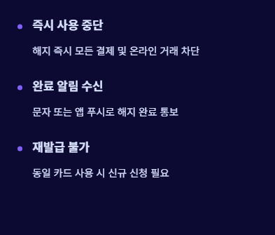 | 가족카드 | 본인 해지 시 자동으로 해지됨 |