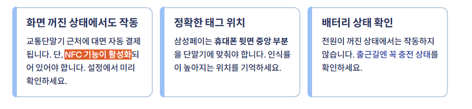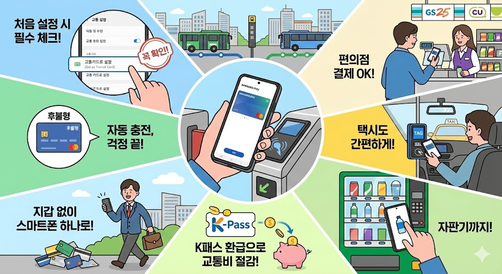 삼성페이 교통카드는 대중교통뿐 아니라 편의점, 택시, 자판기에서도 사용 가능한 가장 실용적인 모바일 결제 기능이에요.