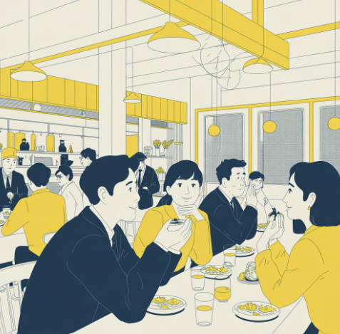 분위기가 조금 부드러워진 시점에서 식사 전에 편안하게 말 한마디 건네면 좋습니다.