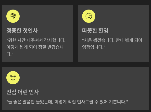 "처음 뵙겠습니다. 만나 뵙게 되어 영광입니다."