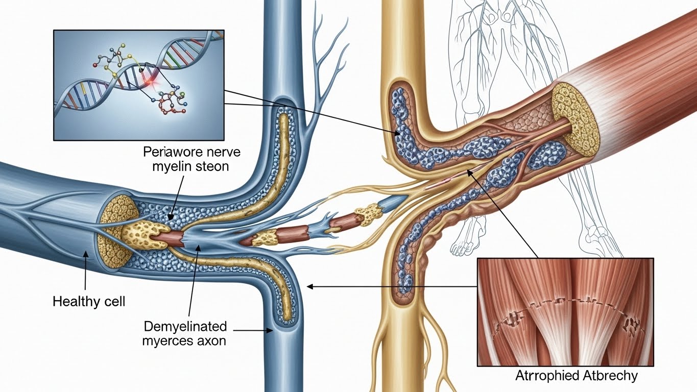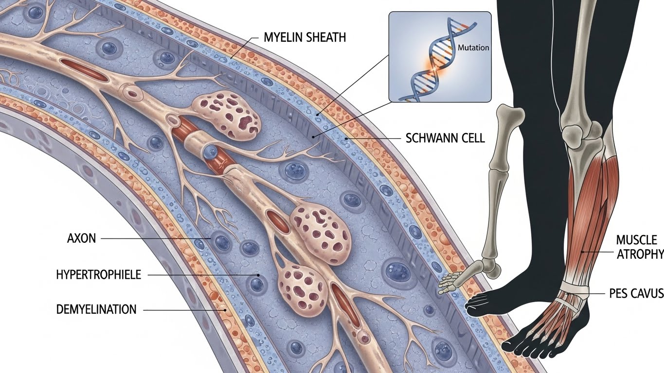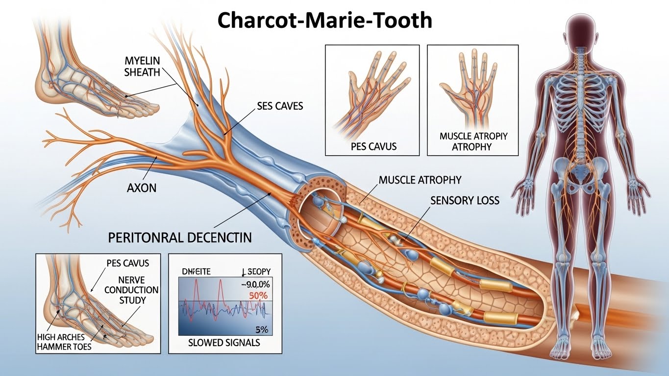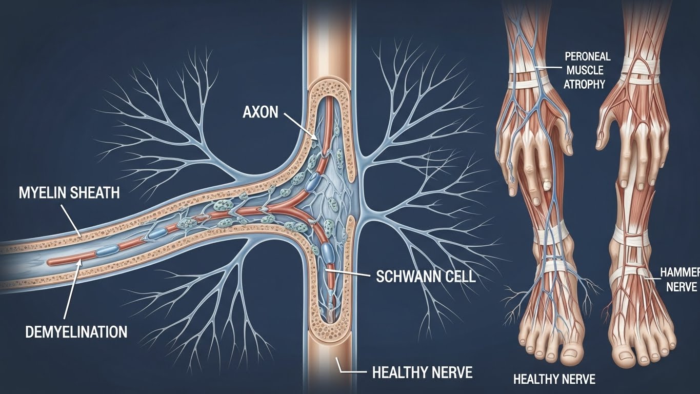 샤르코마리투스병는 말초신경이 손상되거나 기능이 떨어지는 신경 유전 질환이다. 이 질환은 신경이 근육으로 신호를 전달하는 과정에서 문제가 생겨 근육 약화와 감각 저하가 동반된다. 대부분 유전적으로 전해지는 경우가 많으며, 증상은 주로 청소년기나 성인 초기에 나타난다.