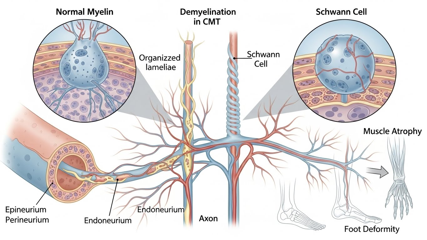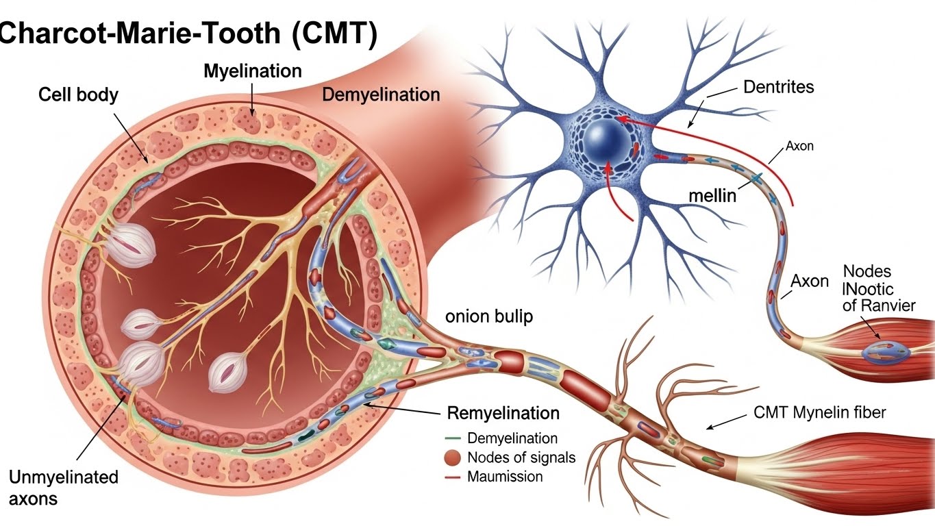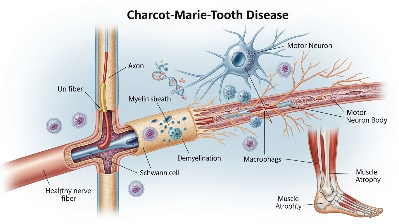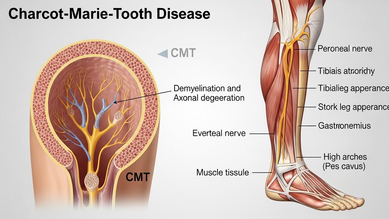샤르코마리투스병는 말초신경이 손상되거나 기능이 떨어지는 신경 유전 질환이다. 이 질환은 신경이 근육으로 신호를 전달하는 과정에서 문제가 생겨 근육 약화와 감각 저하가 동반된다. 대부분 유전적으로 전해지는 경우가 많으며, 증상은 주로 청소년기나 성인 초기에 나타난다.