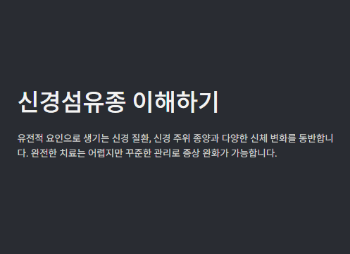신경섬유종은 단순한 피부 질환이 아니라, 신경·피부·시각·청각 등 여러 기관에 영향을 미치는 질환이라는 점이 인상 깊었습니다. 꾸준한 검진과 관리가 무엇보다 중요하며, 특히 초기 증상을 놓치지 않는 것이 치료의 핵심입니다. 증상이 없더라도 가족력이 있다면 정기적인 검사를 통해 조기에 발견하는 것이 가장 좋은 예방법이라고 느꼈습니다.
