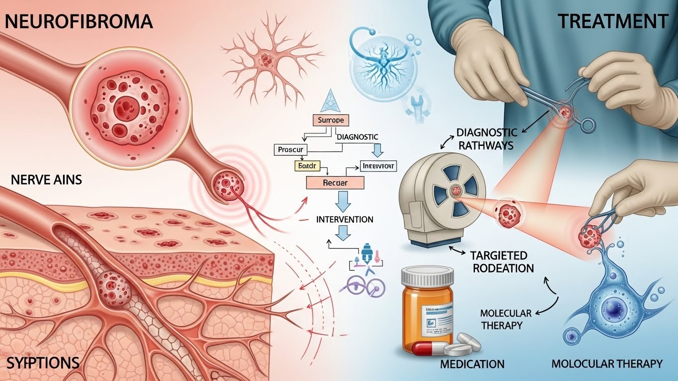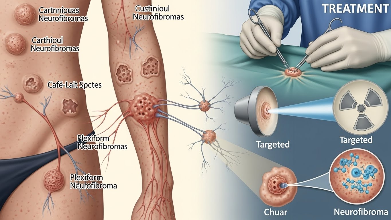 최근에는 표적 치료제(셀루메티닙 등)가 개발되어 일부 환자에게 좋은 효과를 보이고 있습니다. 이 약물은 종양의 성장을 억제하거나 크기를 줄이는 역할을 합니다. 특히 어린 환자에게 많이 사용되며, 수술이 어려운 경우 대체 치료법으로 활용됩니다. 다만 고가의 약물이며 모든 환자에게 적용되는 것은 아닙니다.