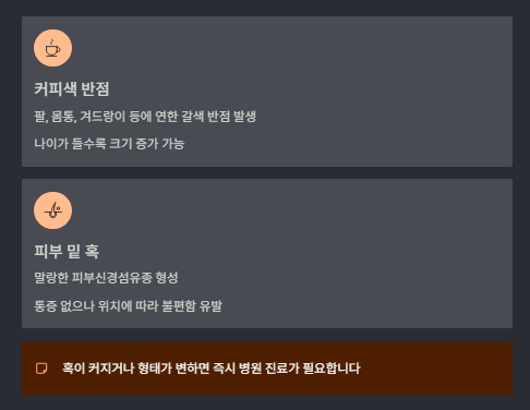 가장 눈에 띄는 변화는 커피색 반점입니다. 팔, 몸통, 겨드랑이 등에 연한 갈색 반점이 여러 개 생기며, 나이가 들수록 크기가 커지거나 수가 늘어날 수 있습니다. 또한 피부 밑에는 말랑한 혹이 생기는데, 이를 피부신경섬유종이라고 합니다. 보통 통증이 없지만, 위치에 따라 불편함을 유발할 수 있습니다. 혹이 커지거나 형태가 변하면 병원 진료가 필요합니다.