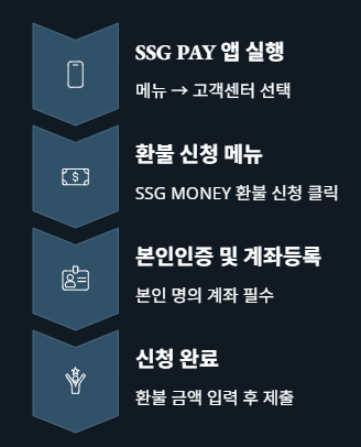 - 메뉴 → 고객센터 → SSG MONEY 환불 신청 선택