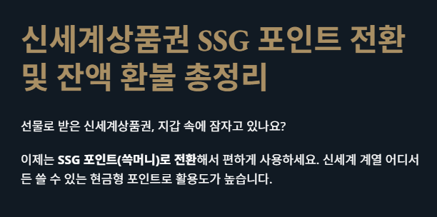 | 전환 방법 | SSG PAY 앱 → 상품권 전환 → 번호 입력 |