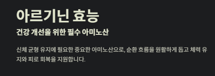 아르기닌은 단순한 보조 성분이 아닌, 신체 활력과 회복 흐름에 실질적으로 도움을 주는 아미노산이라는 점을 다시금 느꼈습니다.