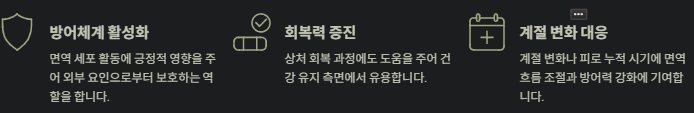 면역 흐름 조절과 방어력 강화에 기여하므로, 계절 변화나 피로 누적 시기에 챙기면 유용합니다.