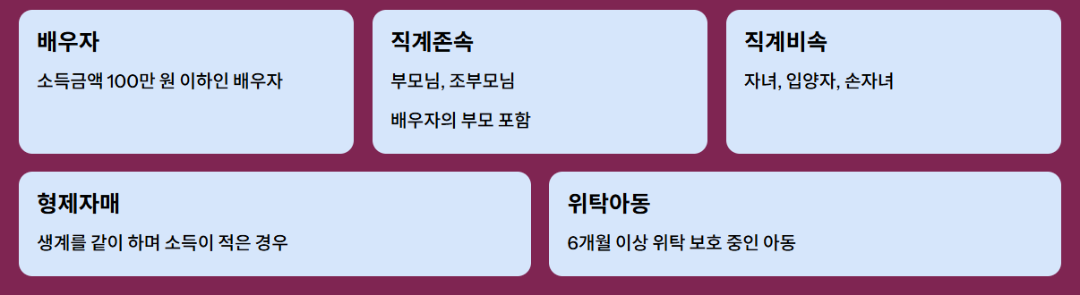 즉, 관계와 생계 여부, 소득 조건만 충족하면 대부분 대상이 되지만, 한 번이라도 중복되면 국세청에서 추징될 수 있으니 주의해야 합니다.