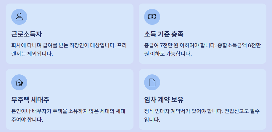 - 세대주 요건 미확인: 가족 중 주택 소유자가 있으면 대상에서 제외될 수 있습니다.