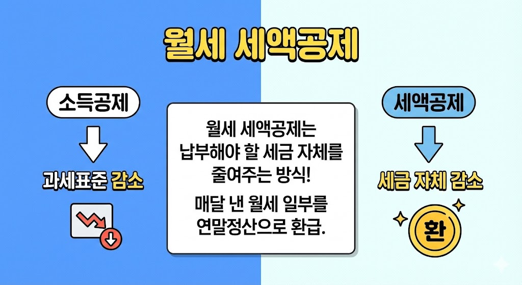 근로자나 사업자가 실제로 낸 월세의 일정 금액을 세금 계산 시 차감해 주는 제도입니다. 즉, 단순히 소득공제가 아니라, 납부해야 할 세금 자체를 줄여주는 방식입니다. 임대차계약서를 기반으로 월세 납부 내역이 확인되면, 일정 한도 내에서 환급 혜택을 받을 수 있습니다. 쉽게 말해 매달 낸 월세의 일부를 연말정산을 통해 돌려받는 것입니다.
