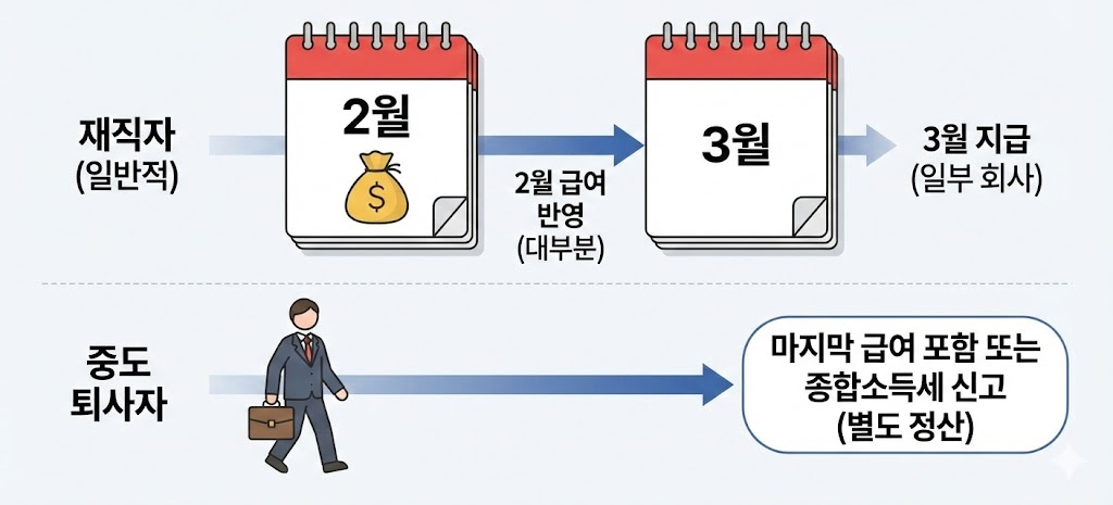 퇴사자의 경우 회사에서 마지막 급여에 포함해 지급하거나, 이후 종합소득세 신고를 통해 환급받을 수 있다. 이 부분은 재직 여부에 따라 달라진다.
