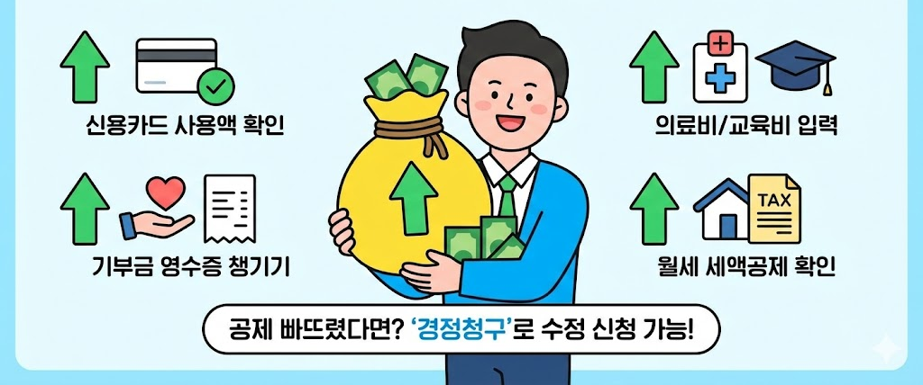 특히 연말정산 간소화 자료를 꼼꼼히 확인하지 않으면 공제 누락이 발생할 수 있다.