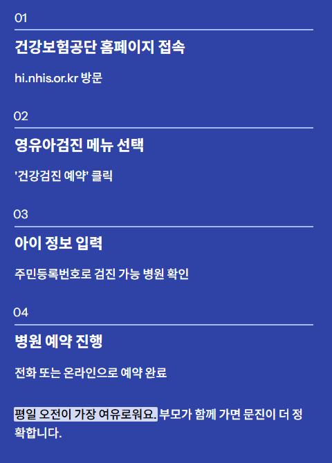 - ‘건강검진 예약’ → ‘영유아검진’ 선택