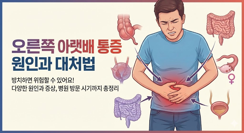 오늘은 흔하지만 가볍게 넘기면 안 되는 오른쪽 아랫배 통증의 다양한 원인에 대해 정리해보았습니다.