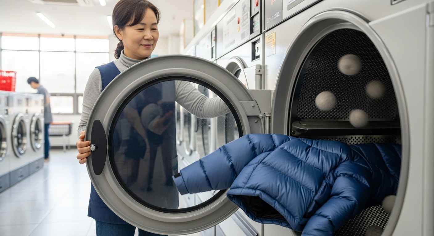 요즘엔 가정용 건조기를 사용하는 경우도 많죠. 이럴 땐 다운 전용 모드나 저온 건조 코스를 선택하세요. 그리고 꼭 함께 넣어야 할 것이 하나 있습니다. 테니스공이나 건조볼입니다.