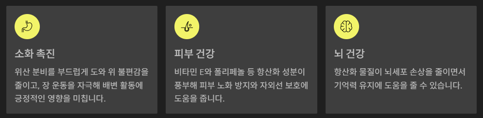 | 두뇌 | 기억력 유지, 항산화 작용 |