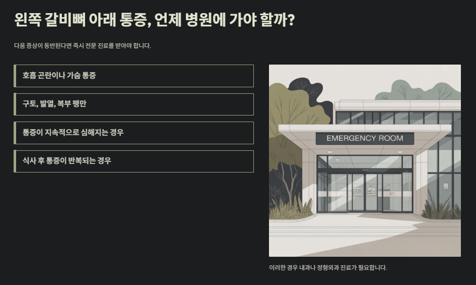 Q. 왼쪽 갈비뼈 아래가 아픈데 언제 병원에 가야 하나요?