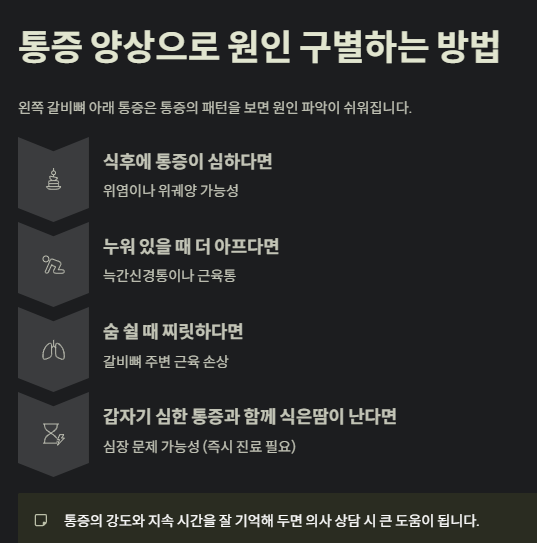 왼쪽 갈비뼈 아래 통증은 패턴을 보면 원인 파악이 쉬워집니다.