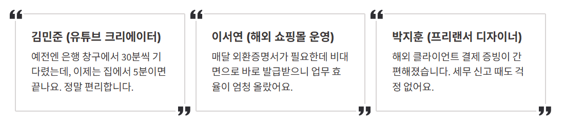 즉, 해외와 관련된 자금 이동이 있다면 거의 모든 상황에서 도움이 되는 문서라고 볼 수 있습니다. 특히 최근 해외 플랫폼 이용자가 늘면서 개인 창작자들도 이 증명서를 활용하는 일이 많아졌습니다.