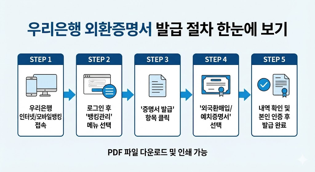 우리은행은 2026년부터 고객 편의를 위해 인터넷뱅킹에서 외환증명서를 바로 발급할 수 있는 기능을 도입했습니다.