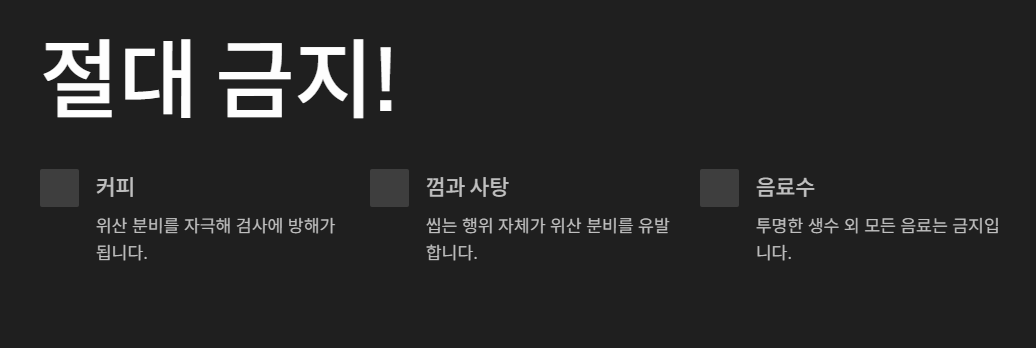 1. 검사 전날, 알람 맞춰 식사 시간 챙기기
