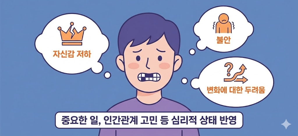 | 어금니 빠짐 | 가족, 경제, 책임 | 부담 증가 |