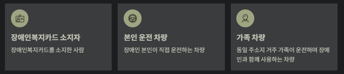 | 기본 | 장애인등록증, 자동차등록증 사본 | 장애인 본인 차량 |