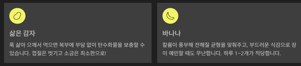 | 바나나 | 칼륨 보충, 부드러운 식감 |