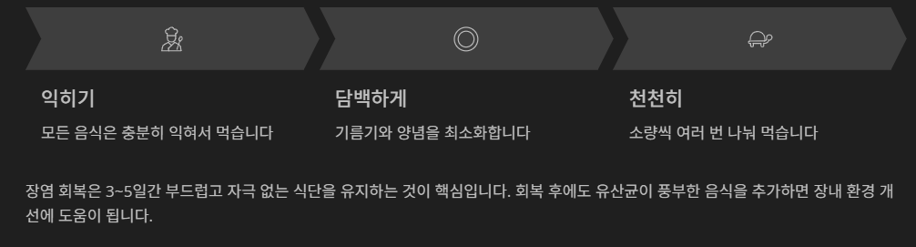 식단 복귀는 천천히, 자극적인 음식은 금지