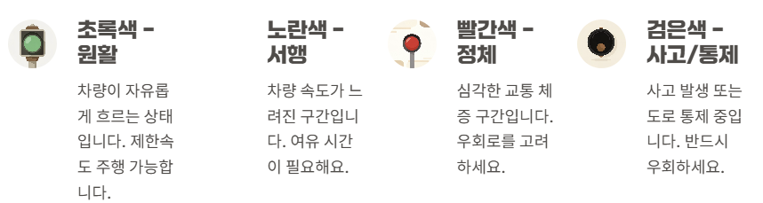 정체 구간은 색상으로 표시되어 한눈에 확인할 수 있습니다.