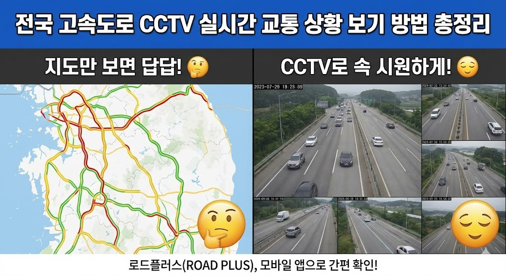 연휴나 주말에 이동 계획이 있다면 가장 먼저 확인해야 할 것이 전국 고속도로 CCTV 실시간 교통 상황입니다. 지도만 보면 막히는지 감이 잘 오지 않지만, CCTV 화면을 직접 보면 정체 구간을 바로 확인할 수 있습니다. 이번 글에서는 고속도로 CCTV 보는 방법, 공식 사이트, 모바일 확인 방법, 우회 팁까지 자세히 정리해 드립니다.