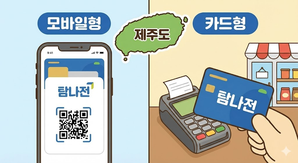 탐나전은 모바일 형태와 카드 형태로 나뉘는데, 실물 카드는 오프라인 매장에서 바로 결제할 수 있어 활용도가 높습니다. 특히 스마트폰 사용이 익숙하지 않은 분들에게도 편한 방식으로 평가받고 있습니다.