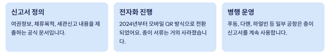2024년 이후부터는 대부분 전자식 신고(모바일 QR 방식)으로 전환되어 별도의 종이 서류를 작성하지 않아도 됩니다.