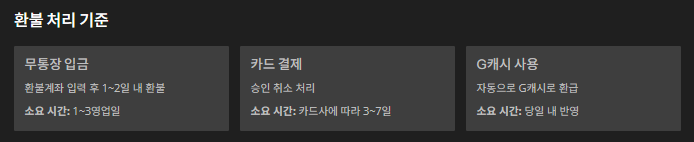 G캐시 사용 자동으로 G캐시로 환급 당일 내 반영