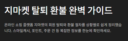지마켓은 다양한 서비스를 제공하는 만큼, 탈퇴나 리펀드 과정도 단계별로 확인이 필요합니다. 한 번 탈퇴하면 복구가 어렵고 남은 혜택이 소멸될 수 있기 때문에, 꼼꼼히 정리한 후 진행하는 것이 좋겠다는 생각이 들었습니다. 구매 이력이나 캐시가 남아 있다면, 충분히 활용한 후 탈퇴하는 것이 가장 합리적인 선택일 수 있습니다.