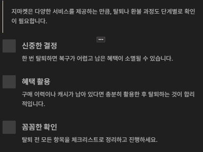 지마켓은 다양한 혜택을 제공하는 만큼, 탈퇴 전에 아래 항목을 미리 정리하는 것이 안전합니다.
