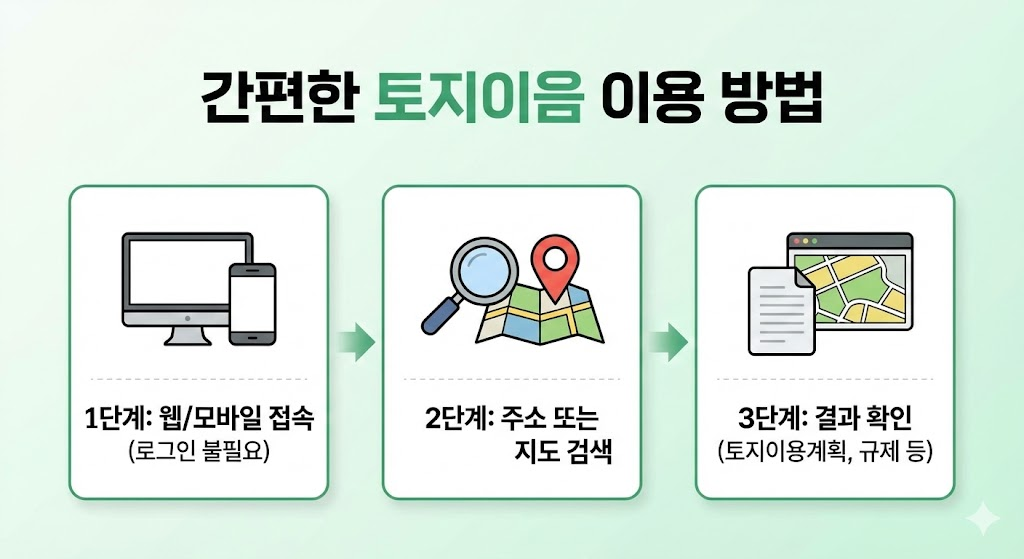 용도지역, 건폐율, 용적률 같은 토지 이용 정보도 함께 볼 수 있어 참고용으로 좋습니다.
