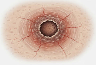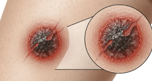 처음에는 작은 종기처럼 보이지만 시간이 지나면 가운데가 검게 변하며 궤양처럼 움푹 파이는 특징이 있습니다. 바로 쯔쯔가무시병의 대표적인 단서이기 때문에 조기 발견이 중요합니다.