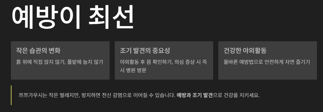 예방하려면 진드기 노출 자체를 줄이는 것이 가장 중요합니다.