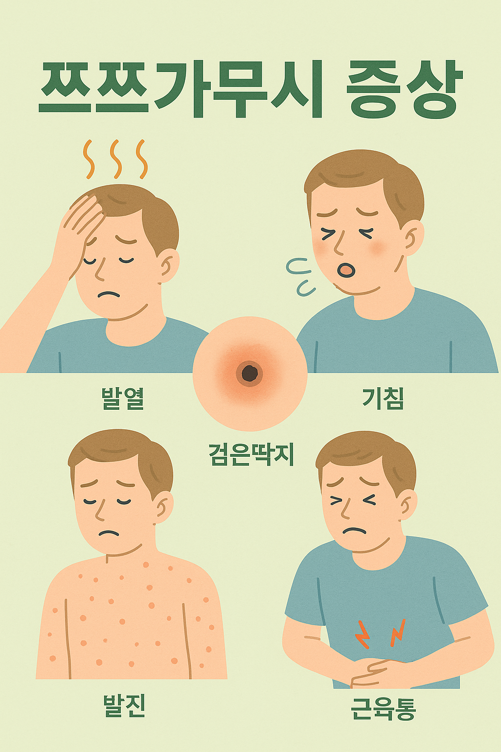 쯔쯔가무시증은 초기엔 단순 몸살처럼 느껴져서 쉽게 넘기기 쉽습니다. 특히 열이 나도 진드기에 물린 기억이 없다면 의심조차 안 하는 경우가 많습니다. 그러나 의외로 몸의 접힌 부위에서 가피가 발견되기도 하니, 미세한 증상 하나도 놓치지 말아야 합니다.