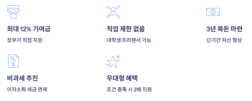 단순한 예금이 아니라, 정부가 직접 함께 저축하는 제도라는 점이 가장 매력적입니다.