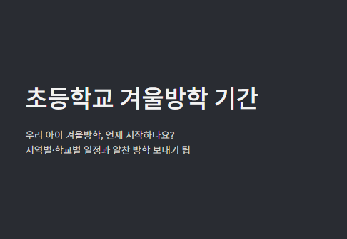 한 해를 마무리하고 아이들이 가장 기다리는 시간이 바로 겨울방학입니다. 하지만 학교마다 일정이 조금씩 달라 부모님 입장에서는 헷갈릴 때가 많죠. 이번 글에서는 전국 초등학교 겨울방학 기간과 보관 기간별 차이, 확인 방법을 정리했습니다.