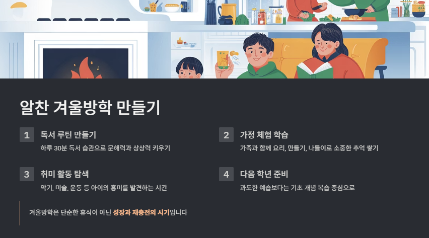 겨울방학은 단순한 휴식기가 아니라 성장과 재충전의 시기입니다.